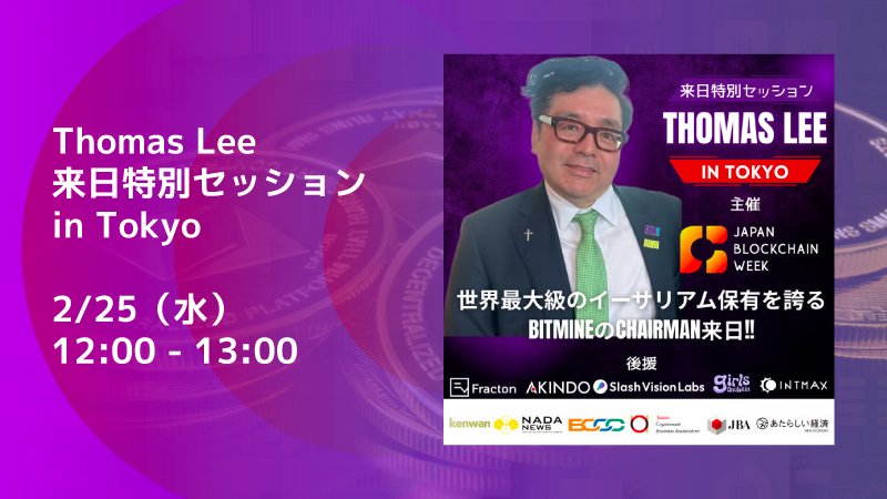 世界最大イーサリアムDAT「BitMine」のトム・リー、2/25正午に緊急来日公演